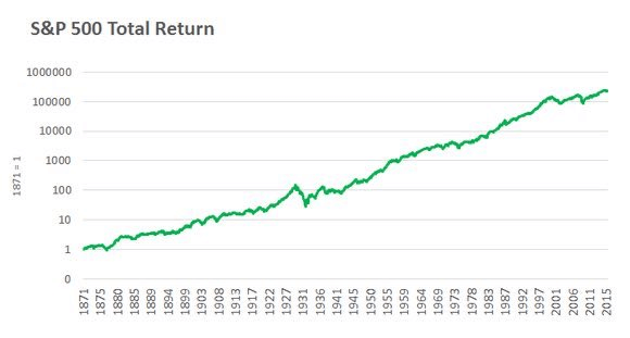 This chart below of the S&P 500 Total Return spanning from 1871 to 2015 demonstrates the incredible resilience and growth of the stock market over the long term. Despite the inevitable ups and downs, at every point in time, one could have argued that: